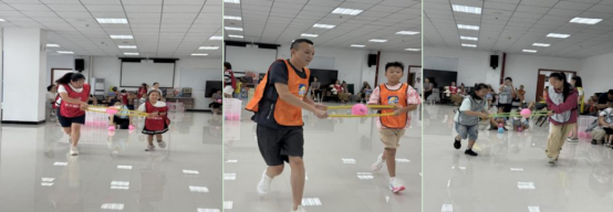 “最后一个项目——拉拉绳贴贴纸!”主持人话音刚落,孩子们立刻欢呼起来。家长们站在绳子这头,孩子们站在那头,中间隔着一段距离。家长需要拉动绳子靠近孩子,把爱心贴纸贴到孩子胸前的“小爱心”区域。“爸爸,再往左一点!对对对,就是这里!”孙立本踮着脚尖,小手指着自己的衣服,爸爸屏住呼吸,慢慢拉动绳子,当贴纸稳稳贴上的那一刻,父子俩同时笑出声,像完成了一个了不起的“秘密任务”。